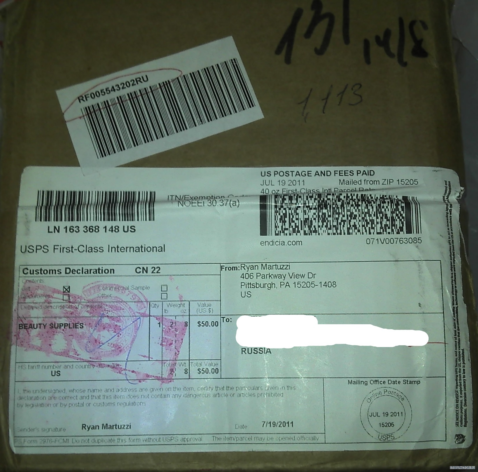 Дошла посылка с ББ от 01.07. с трибулусом и жиросжигателем. Всё на месте.