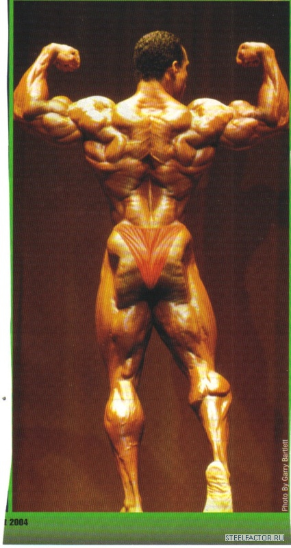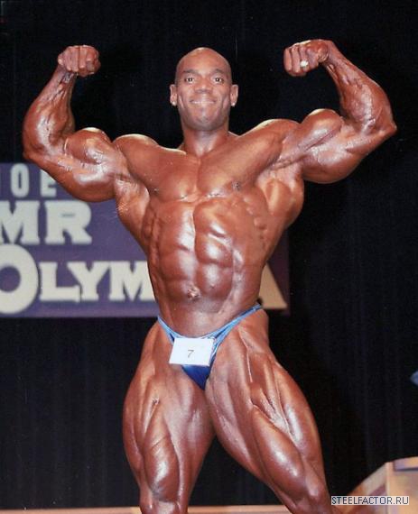 а есть фото этих 96-ти?Тем не менее, Уилер катастрофически потерял в объёмах. На турнирах "Мистер Олимпия" - которые, вероятно, являются самыми престижными соревнованиями в культуризме - Уилер приходил к финишу вторым в 1998 г. и третьим в 2000 г. Но в 2002 г., тренируясь без стероидов, он занял лишь седьмое место. Он весил всего 96 кг - сравните эту цифру с его весом 109 кг на соревнованиях до этого.