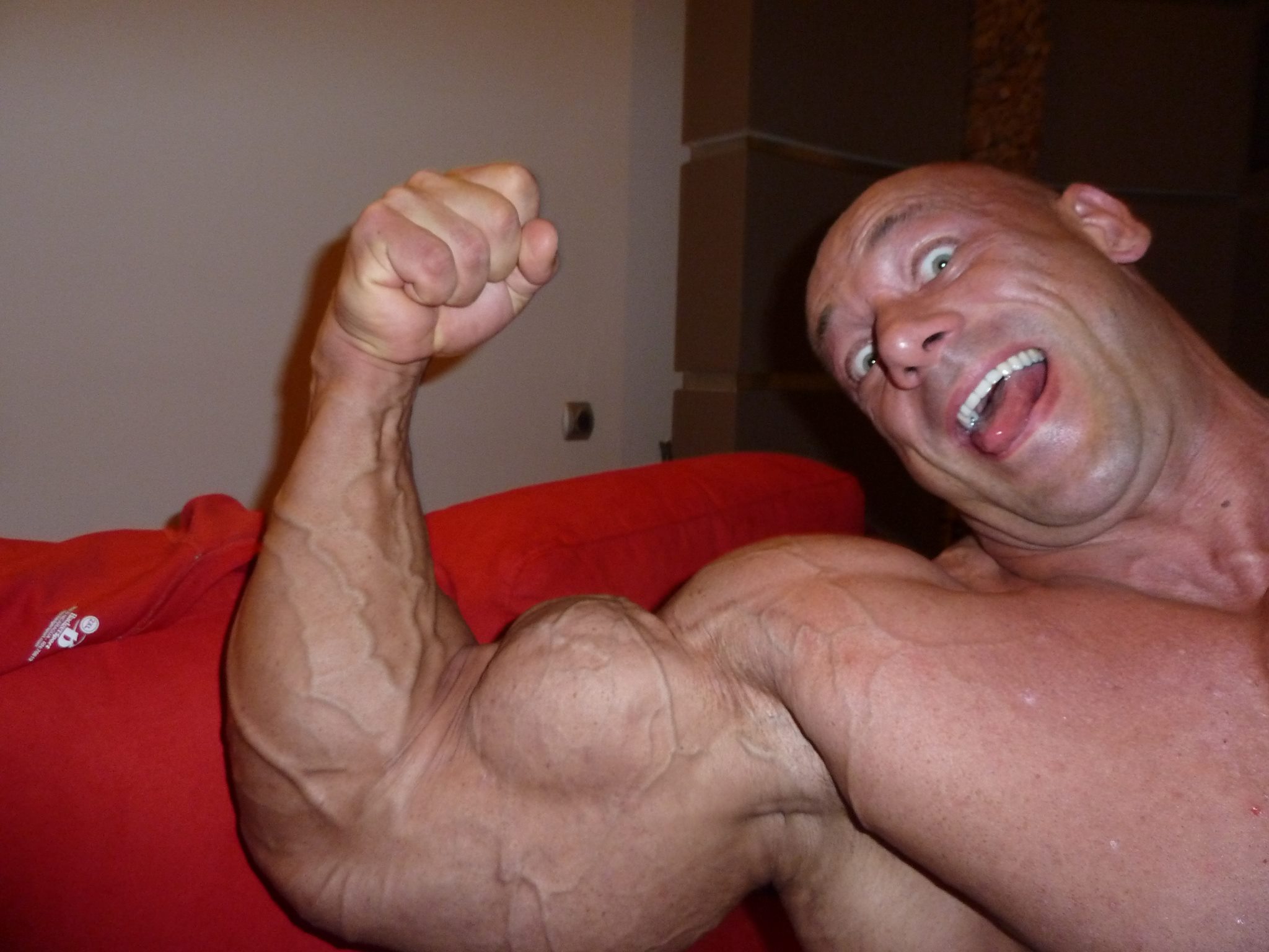 страшно боится всех у кого большие мышцы