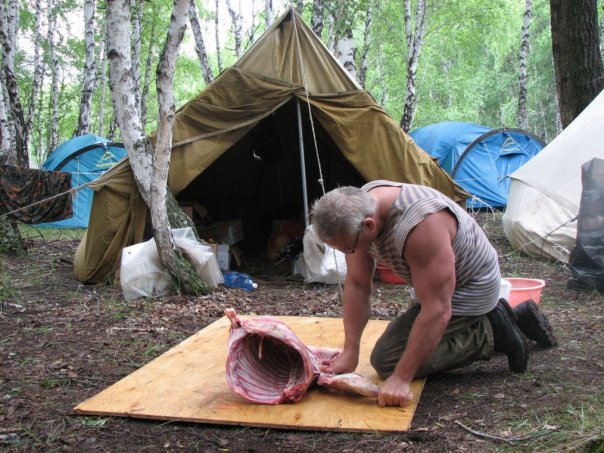 Убийство и разделка овечки. июль 2008. Горный Алтай.
