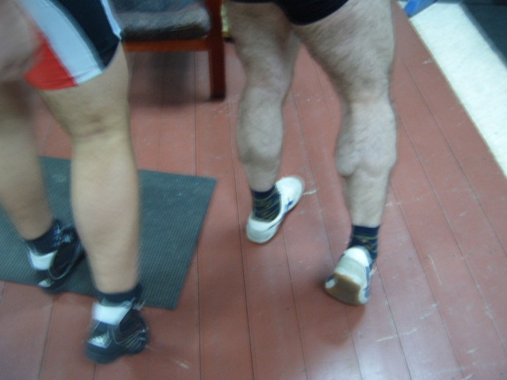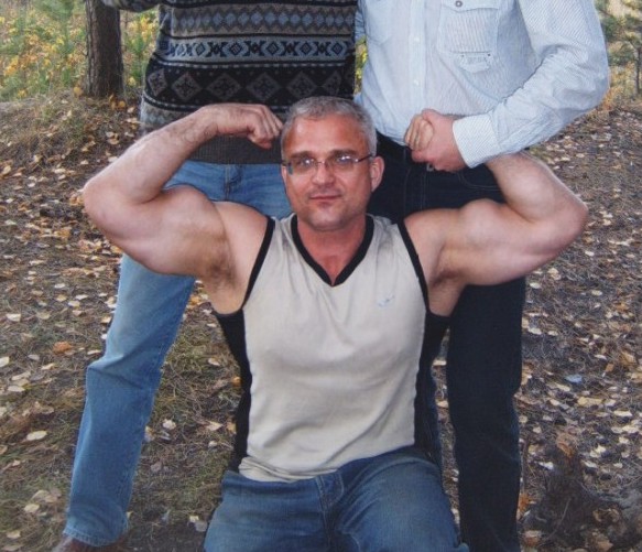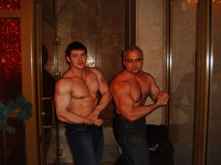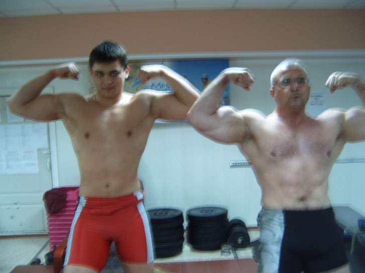 После жимовой тренировки! Просто балдели. Сейчас в одинарной майке жму 220кг. Вес 97кг.