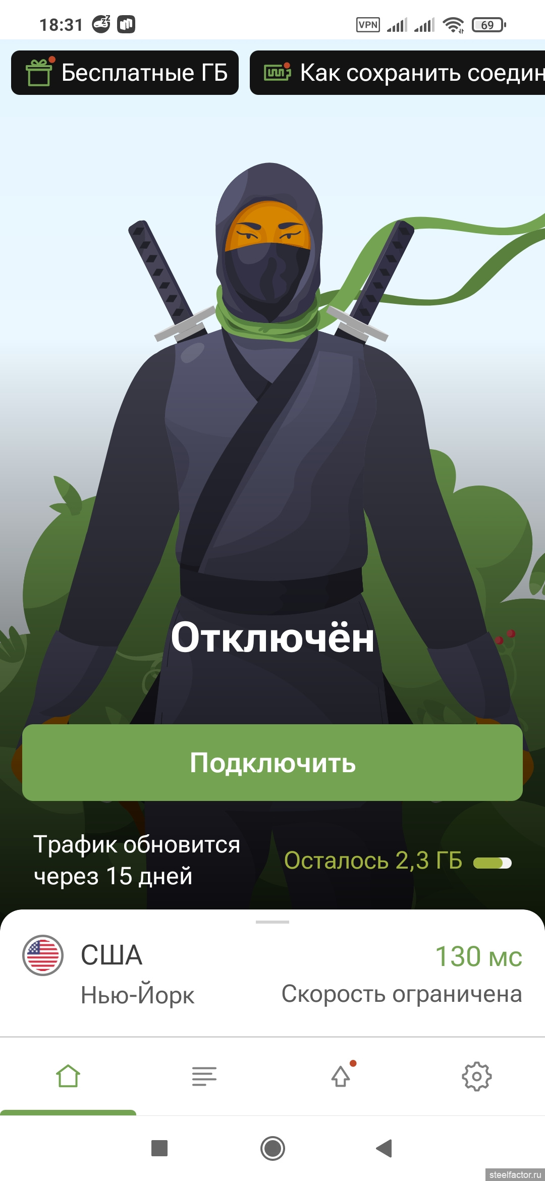 Сверху впн светится.