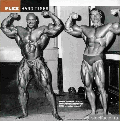 Витю можно сравнить с Арни.Арни -тяж.Ну как бы размерами (в отношении к размерам всего остального). Бицепсы Колемана меркнут на фоне остального Колемана.