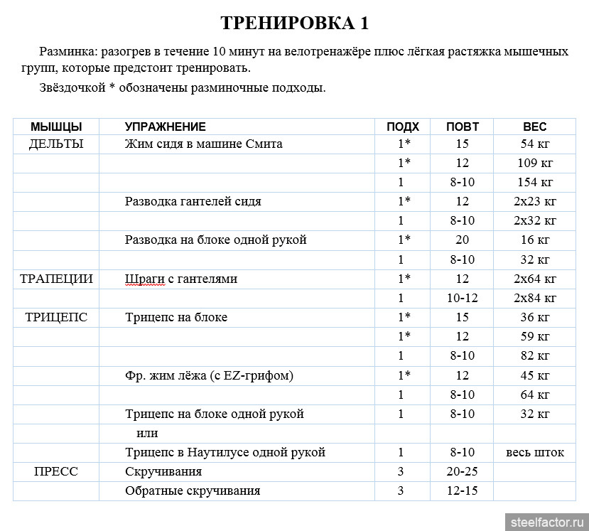 День 1: Дельты, трапеции, трицепс, пресс