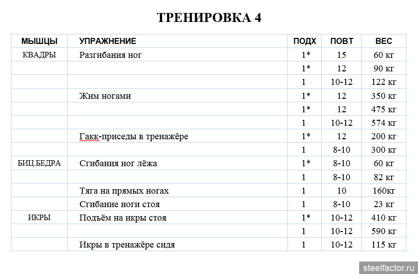 Один подход, у Ятса их 3. В отказ, у Ятса заотказная работа. Больше отдыха. И от программы Ятса остается только набор упражнений (это не было озвучено, но, вероятно, и здесь тоже все по-своему).