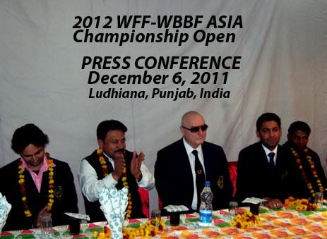 Приближаясь открытому чемпионату ВФФ-ВББФ (World Fitness Federation, World Body Building Federation) Азии, 6 декабря 2011 г. в г. Лютхана (Пенджаб, Индия) организована международная пресс конференция. Подробности на международном сайте, читайте форум.