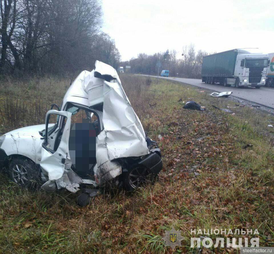 Кошмарная авария... авто всмятку. Управлял Олег Жох, в тяжелом состоянии доставлен в больницу. Два пассажира - его отец и Андрий Пушкарь, погибли на месте.