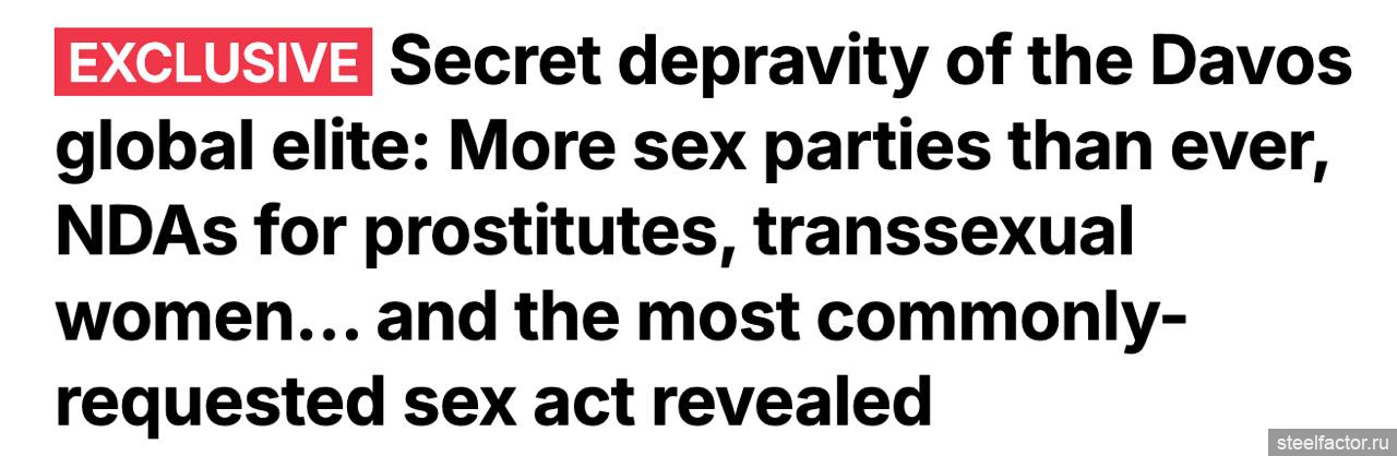 "Тайный разврат глобальной элиты". Во время недавнего форума в швейцарском Давосе резко подскочил спрос на экскорт-услуги - в том числе, на транс-женщин.