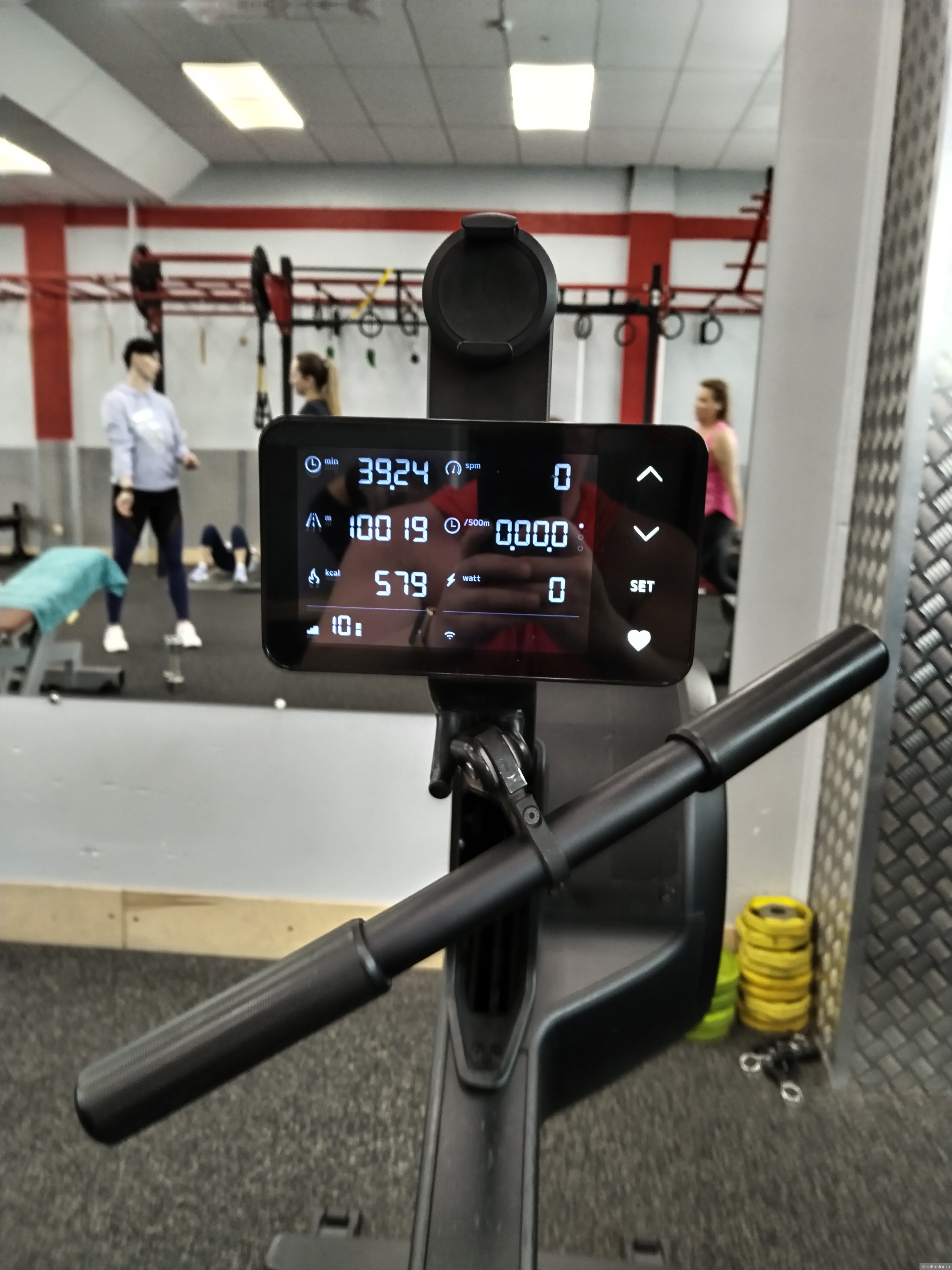 Гребной тренажер 10 км. ну такой более или менее темп, вроде все нормально, в кардио начну добавлять с каждым днем.