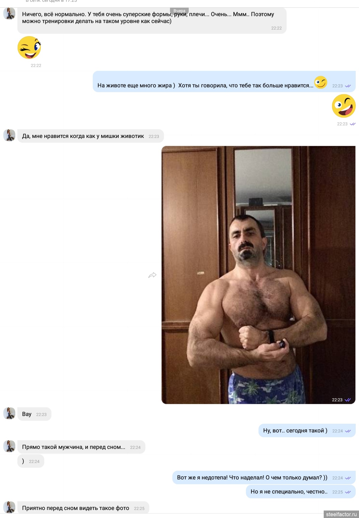 там вместе с фото скрин переписки из которой следует, что девушка оценила очень положительноVery Fat Boy, разве бабам не поф на это? Те кто в фитнессе сами, они что-то поймут. Голова им нужна.