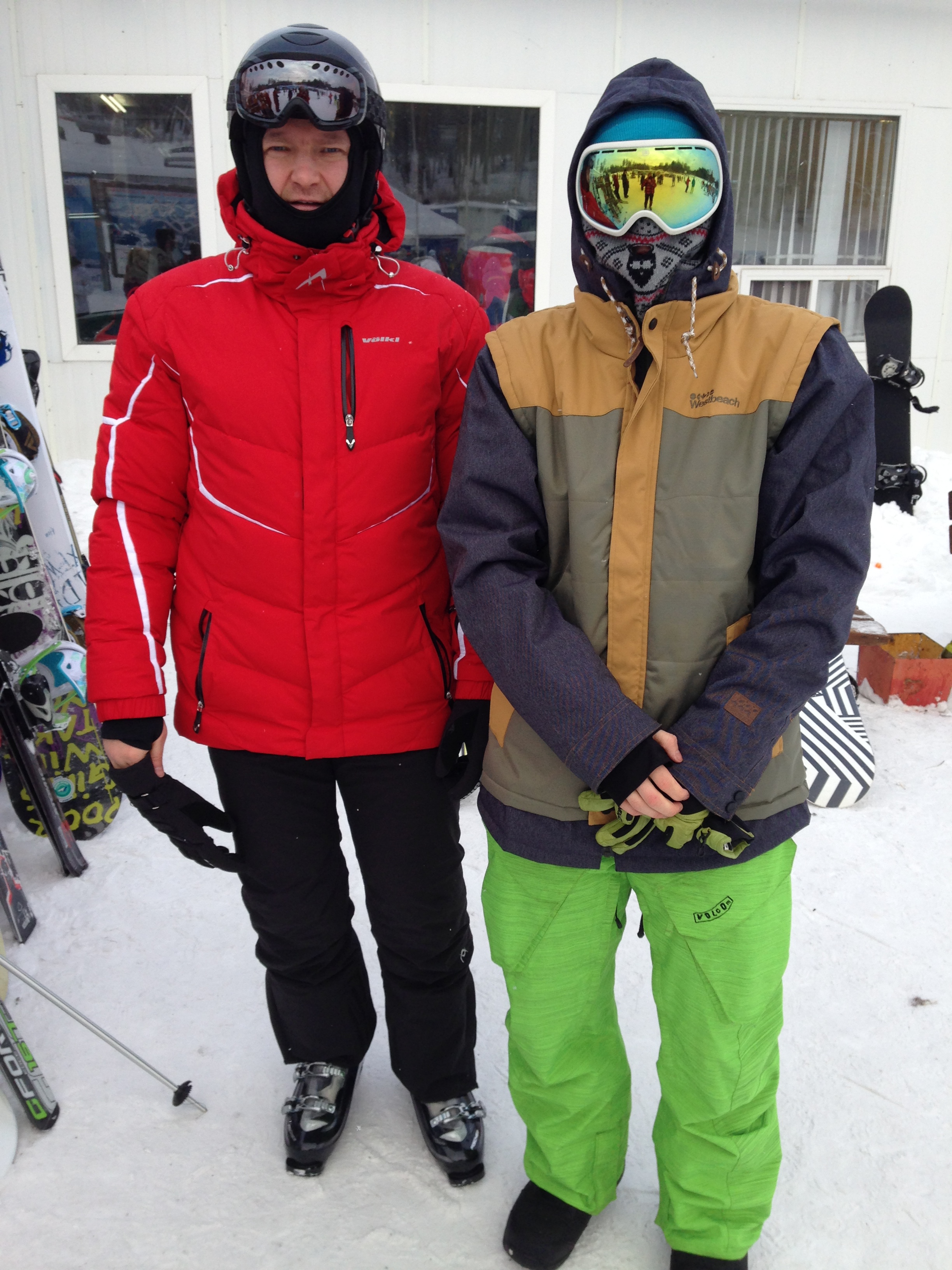 на Урал, я на горных лыжах, сын на сноуборде