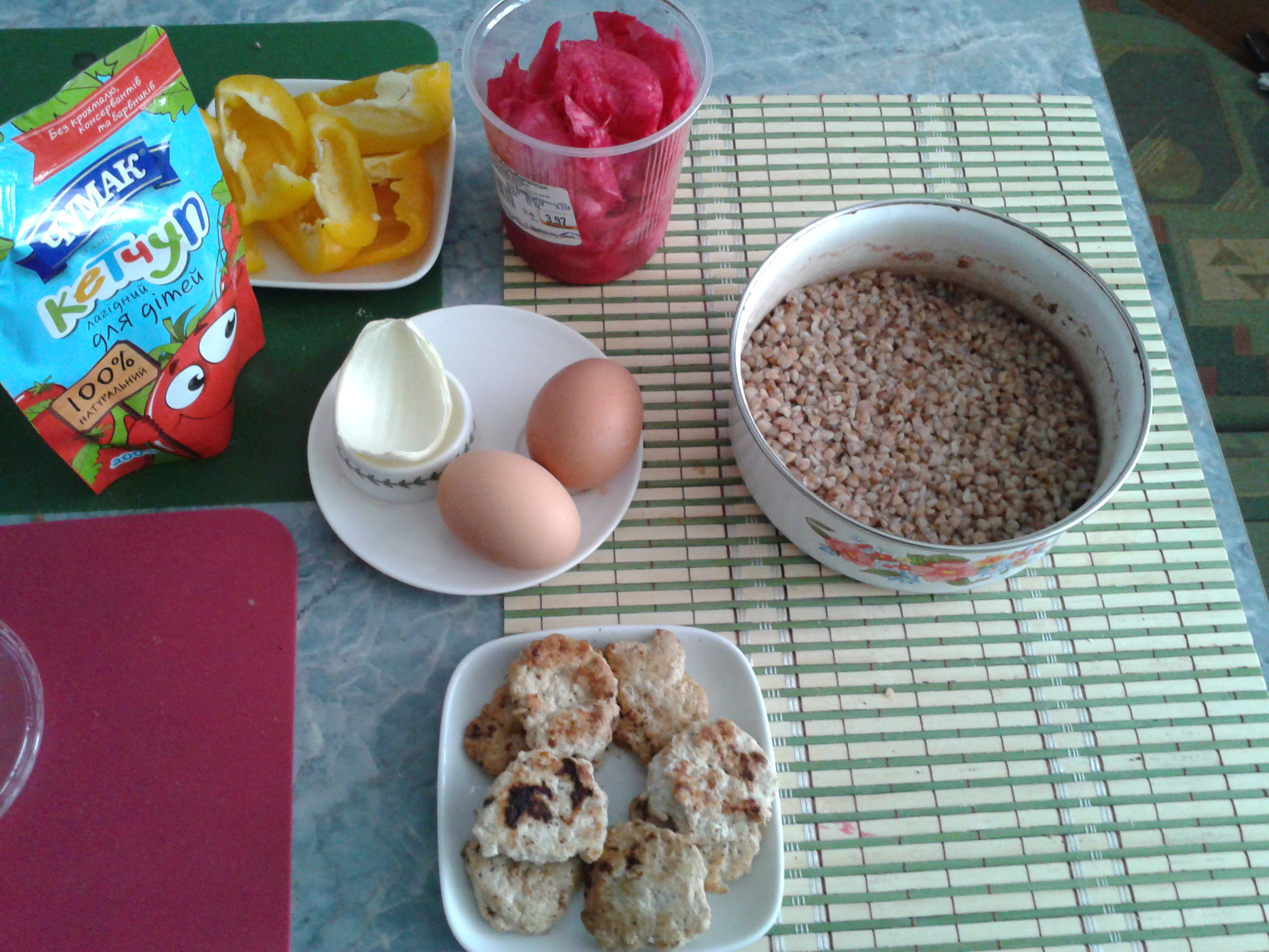 Да, вот мой сегодняшний завтрак и витамины: