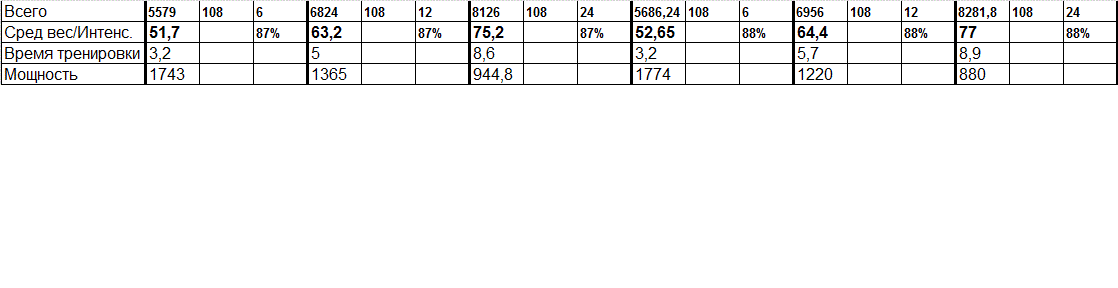 2тренировка: Тонаж 12830; время 11,25 ; мощность 1140, ср. вес повт. 42,8