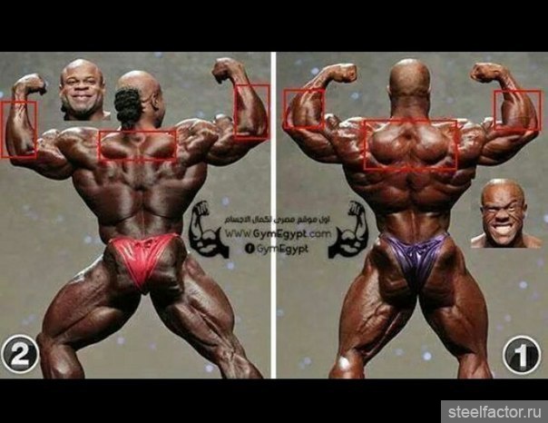 На данном фото присутствует полное отсутствие предплечья, явная нехватка трапеции, полное отсутсвие брахиалиса, безформенные плечи, нехватка массы трицепса, отсутсвие симметрии, отсутсвие 3д эффекта мускулатуры и криво поставленая поза.