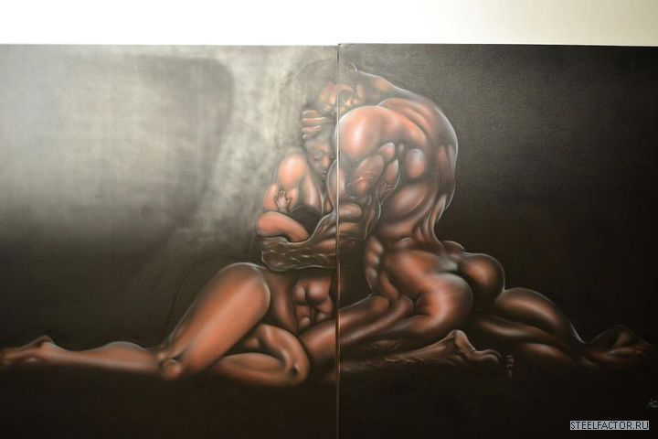 - На берегу моря лежит красивая обнаженная женщина, рядом с ней лежит ребенок, который сосет у нее грудь... Картина называется "Счастье".