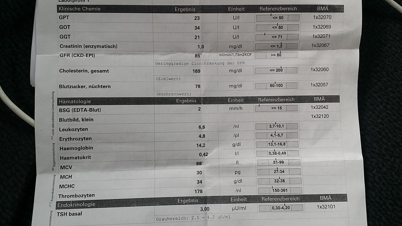 Сдал кровушку две недели назад посмотреть - как оно там выглядит на LCHF. Всё чОтко) Холестерин почти посередине, сахар ровно посередине, ну и остальные гемоглобины, лейкоциты и прочие тромбоциты посерёдке).