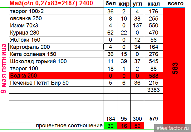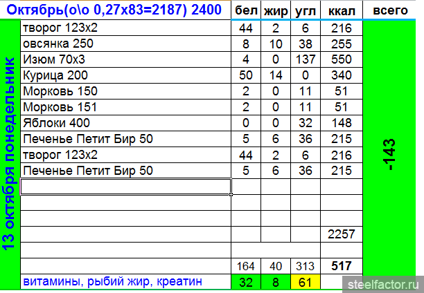 нее не не . я сдался ))) . я для себя отталкивался от бжу. калорийность выходит сама.