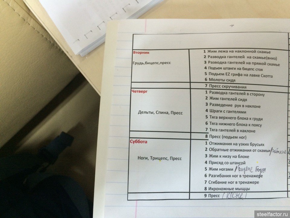 "Через полгода- год с ростом рабочих весов имеет смысл перейти на сплит системы ( раздельный тренинг)"