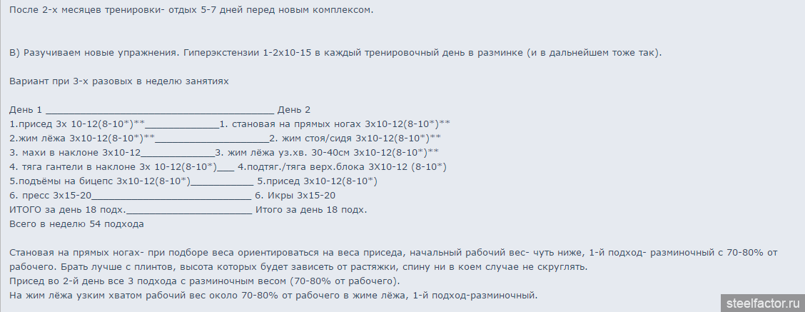 С сентября(2014) по февраль(2015) занимался по следующей программе (веса с учётом веса штанги):
