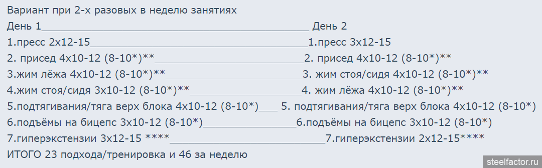 Индивидуальная программа . нужна ли вам прям индивидуальная программа ? так ли сильно вы отличаетесь от обычных людей вокруг вас ? у вас три ноги или шесть рук, крылья, клюв, жабры ? нет ? так почему же вам нужна индивидуальная программа ? в школе вас учили писать как и всех или по индивидуальной программе? Играть в футбол на улице , тоже как все или индивидуально ? и таких примеров вы найдете вокруг целое море. Забудьте про все индивидуальное пока не достигли уровня « выше среднего» и на вас уже начинают показывать пальцем ). Работайте по « общим» программам , они вам принесут явно больше пользы , чем мифические индивидуальные.