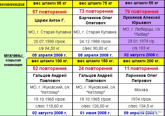 рекорд русского жима по мужикам 100 кг. х 52
