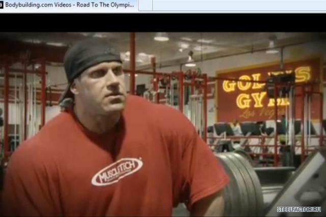 Привет ребята! Фэны бодибидинга по всему миру. 3-ёх кратный Мистер Олимпия здесь в зале Golds Лас Вегас. Мы здесь для съёмок «Путь к Олимпии», спонсированные Bodybuilding.com и, конечно же, Muscletech. Вам лучше подключиться, чтобы посмотреть сегодняшнюю тренировку ног. Так что затяните пояса потуже, приготовьте ваши коленные бинты. Мы покажем вам, как 3-ёх кратный, идущий на звание 4-ёх кратный, Мистер Олимпия тренирует свои ноги. Так что займёмся делом!