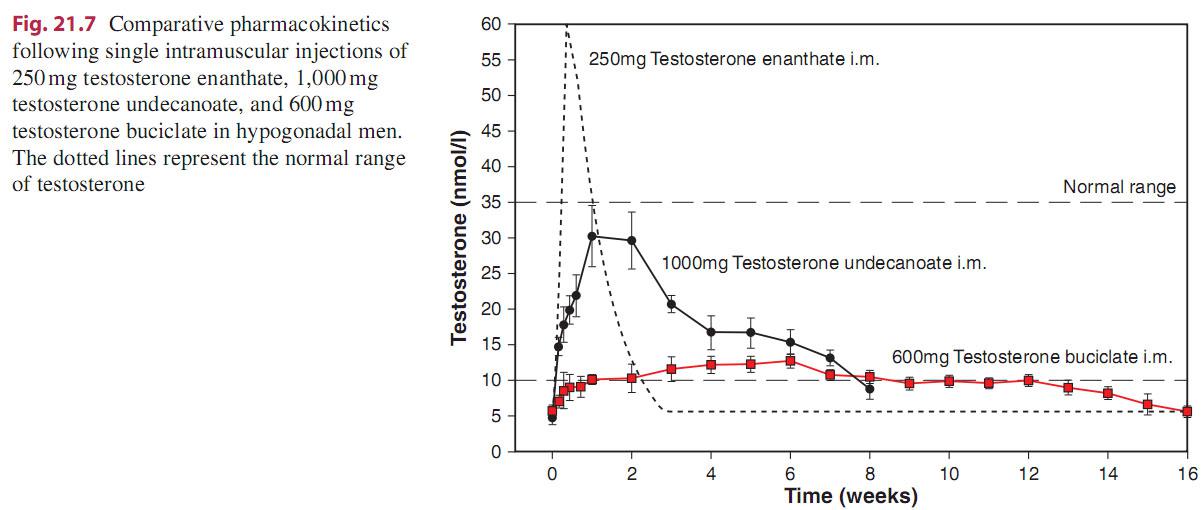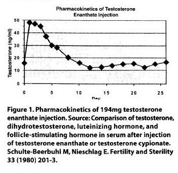 По рисунку видно, что при уколе небидо, несмотря на введение большой дозы сразу, концентрация теста в крови колеблется в пределах нормы, а при уколе энантата в количестве 250 мг получается сверхфизиологический пик и резкий спад ниже нормы.
