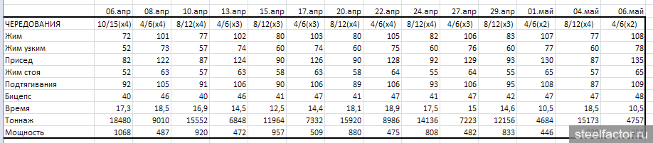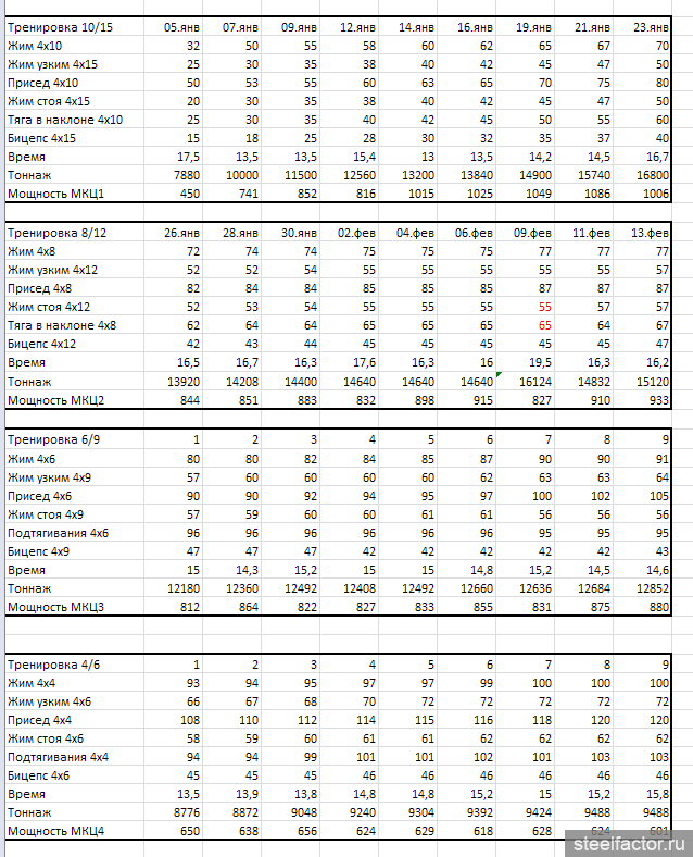 ), что того же самого можно добиться без устраивания гонки на время. На МОЙ (непрофессиональный взгляд) рациональное зерно в этой системе это более частая тренировка мышц (что, в общем в любом фулбади есть), ограничение целевой амплитуды, упор на базовые упражнения, работа на малые группы после больших). А вот необходимость постоянного увеличения мощности, как говорит Казаков (или плотности, короче КПШ в минуту) вызывает определённые вопросы.