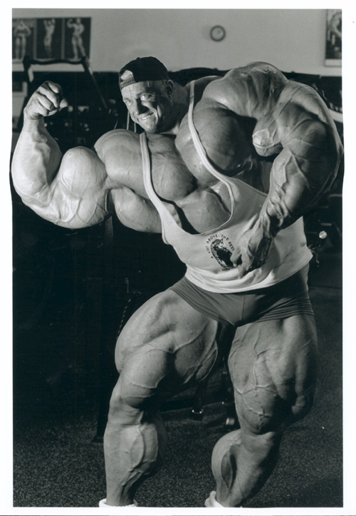 При своих объемах он должен весить поболее (если, конечно, у него бы были "натуральные химические" мышцы). К тому же, ФОРМА мышц у него не совсем естественная.