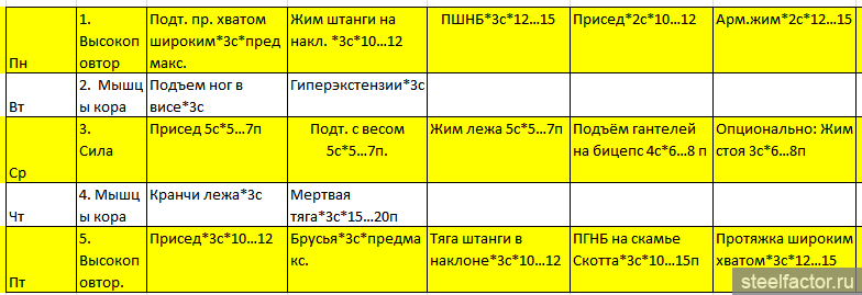 5. Получается почти одно и тоже, если будет реальный выход на максимальные результаты на те же 5-10 повторений - удачи не видать, если работать по настоящему только в среду, может толк и будет, с другой стороны -тогда можно только в среду и ходить.
