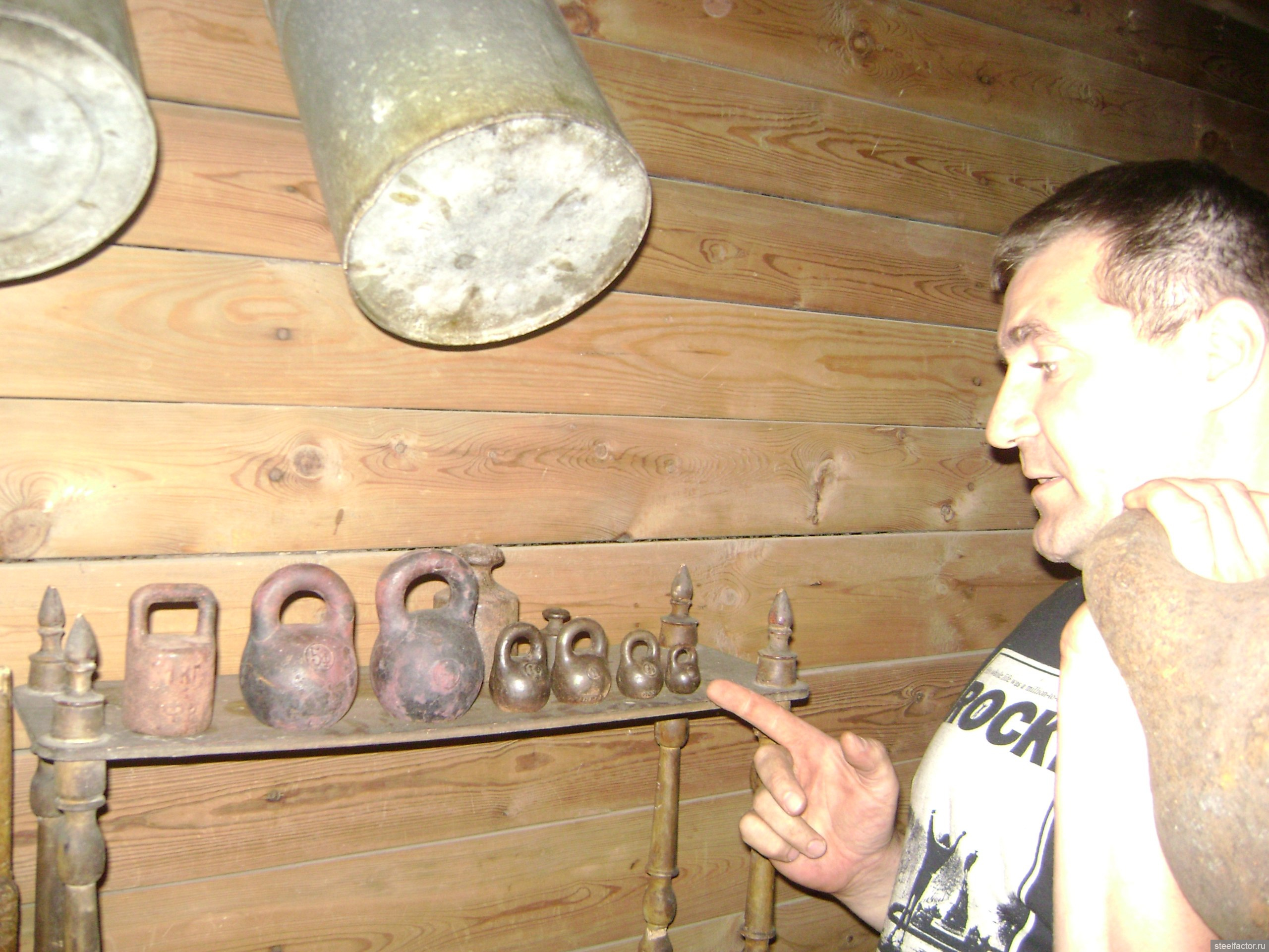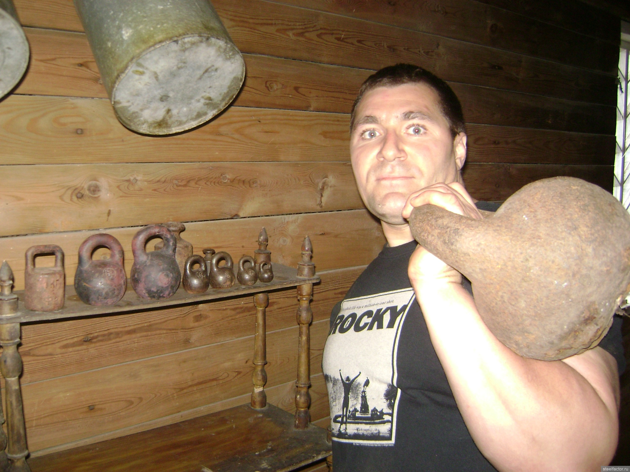<<3)Длительным летним отдыхом от гиревого спорта, когда занимался жимом гирь и качалочкой со штангой. Особым своим достижением за этот период считаю приседания со штангой (140кг 30 раз в подход), пришло увлечение становой тягой (195кг на 3 раза, 175кг на 14 раз) и отжиманиями на брусьях с отягощением (50кг на 8 раз)>>