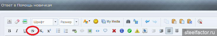 Siamese_Cat, блин, надоел... Над текстовым окошком есть кнопочки с функциями... там нарисована большая буква "S" перечёркнутая. Выделяешь текст и нажимаешь букву.