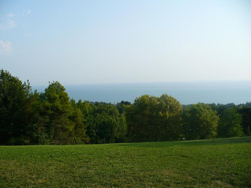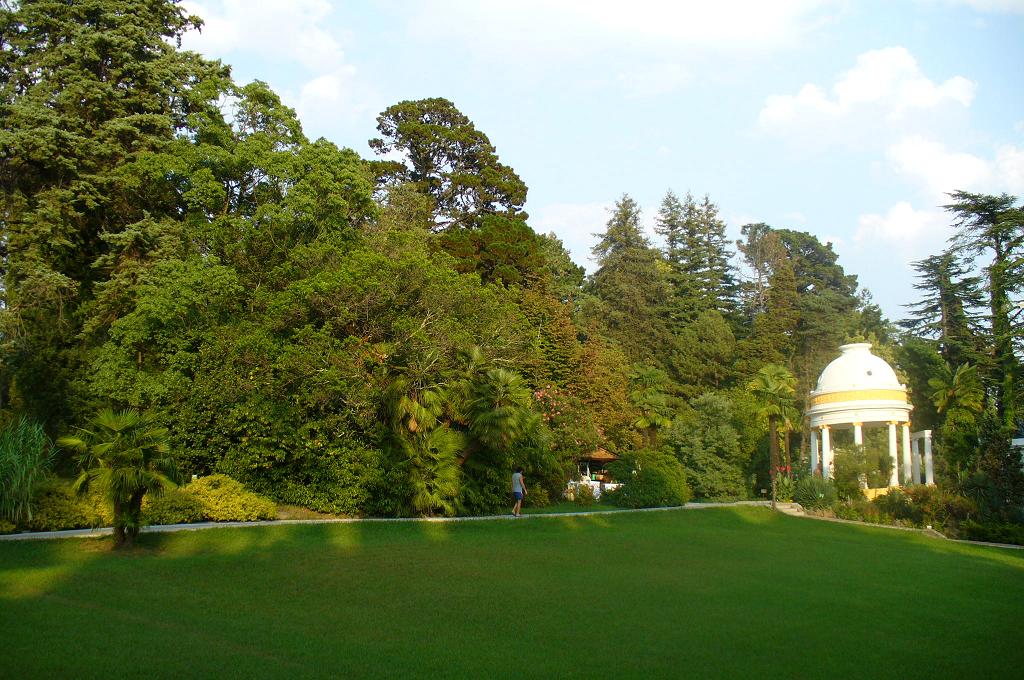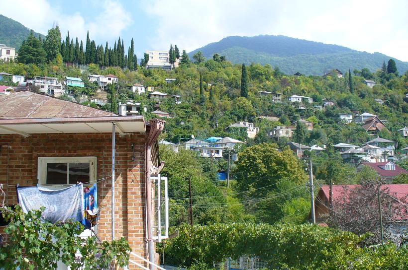 Один раз мы выбрались в Сухуми и посетили обезьянник.Впечатление жутковатое...по многим причинам.Вообще,когда заезжаешь в Сухуми,постоянно сталкиваешься со отголосками недавней войны,лишь слегка припорошенной временем...Каждый второй дом на въезде в город испещрен следами от пуль из автоматов и крупнокалиберных орудий,некоторые дома до сих пор лежат в руинах,местами стоят просто обгоревшие стены.Обезьянник же-вообще отдельная история.Раньше на его территории был научно-исследовательский институт,(мы зашли в маленький музей и читали о разработках наших ученых всяческих вакцин и т.д).А сейчас все это пришло в упадок и давно заброшено.Но научный комплекс в несколько огромных зданий остался.Что скрывается за его потрескавшимися стенами,поросшими плющем,никто не знает.Вся прилегающая территория заросла совершенно дикими джунглями,среди которых периодически натыкаешься то на какие-то каменные ступеньки,то на чернеющий сквозь зелень оскал люка,ведущего неведомо куда.Стоит тишина,нарушаемая только криками оставшихся в клетках в ужасных условиях обезъян(местные говорят,что во время войны многих обезьян расстреляли,а некоторые вырвались на волю и разбежались),неимоверно жарит солнце,а вокруг джунгли да заброшенный научно-исследовательский комплекс...В общем,будь я режиссером,непременно снял бы на такой шикарной натуре фантастический триллер в духе"Хищника".Мы кстати,ездили туда смешанной компанией и чтобы как-то приободриться,немного подурачились своей мужской половиной на тему этого фильма,но потом наши девушки стали умолять нас побыстрее покинуть это жуткое место и мы подчинились.