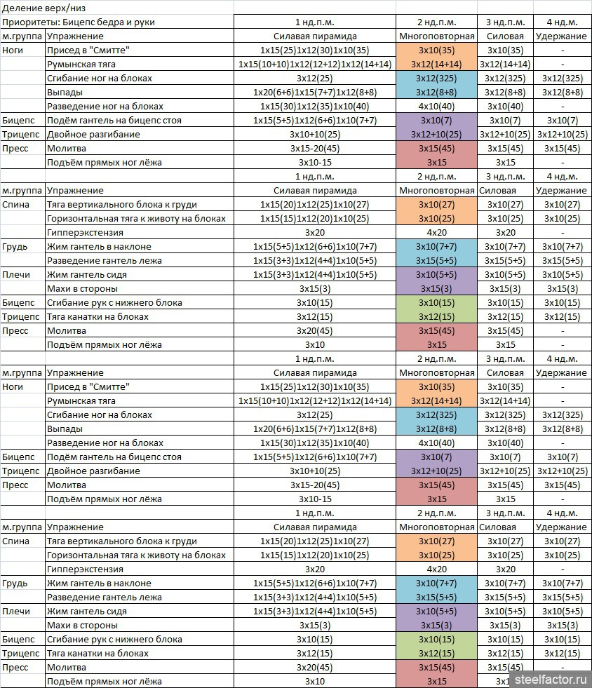 я же правильно понял, что это 4-х дневное фулбоди в среднем с 10-11 упражнениями в день тренировки?))