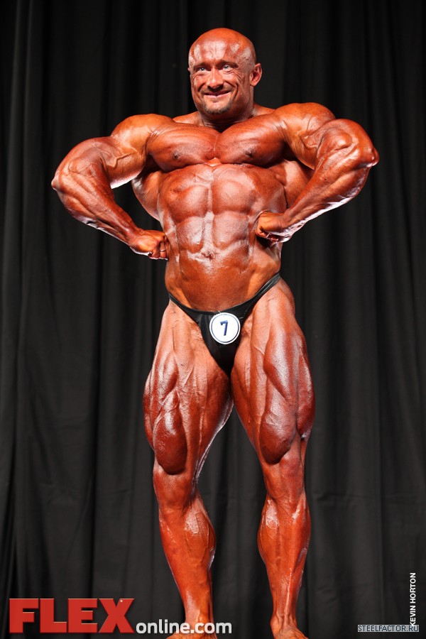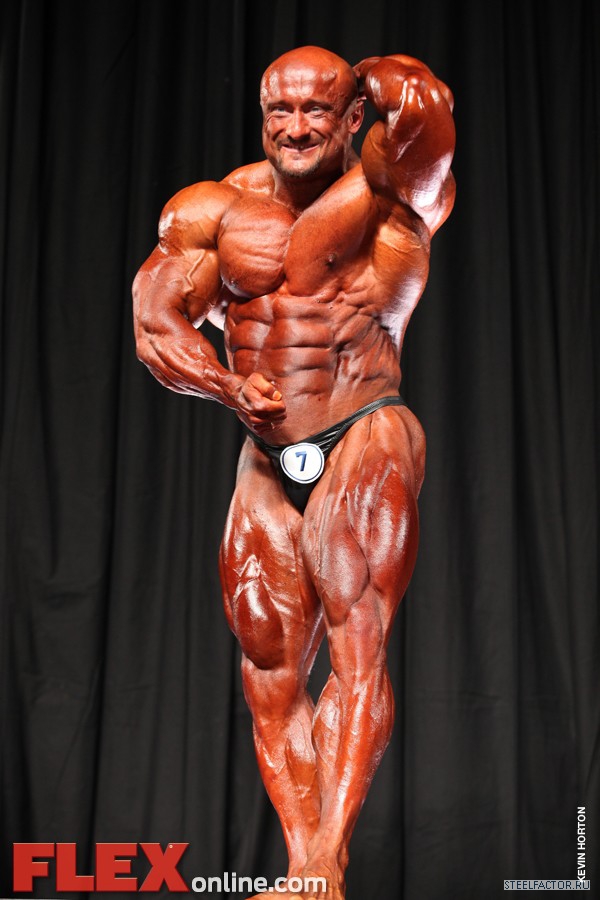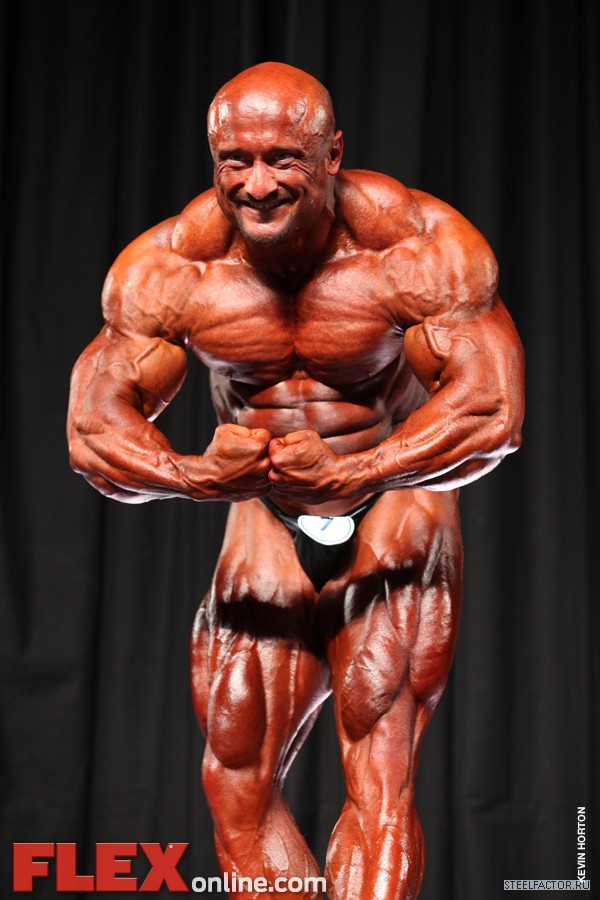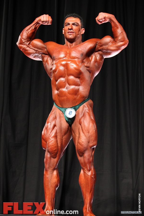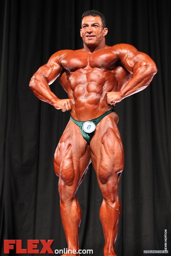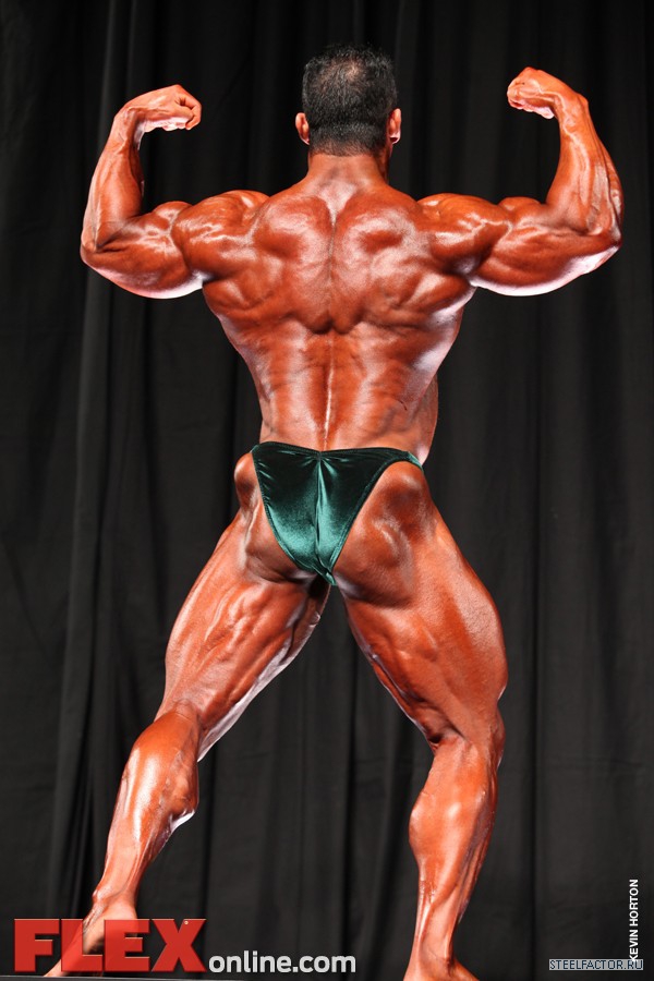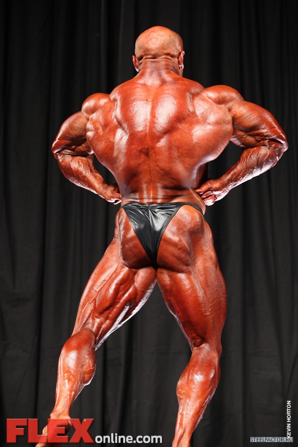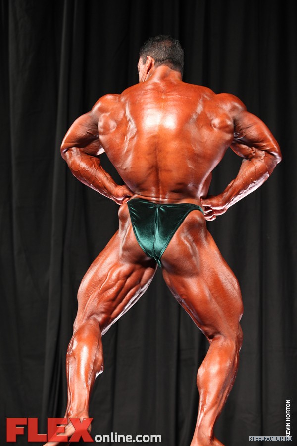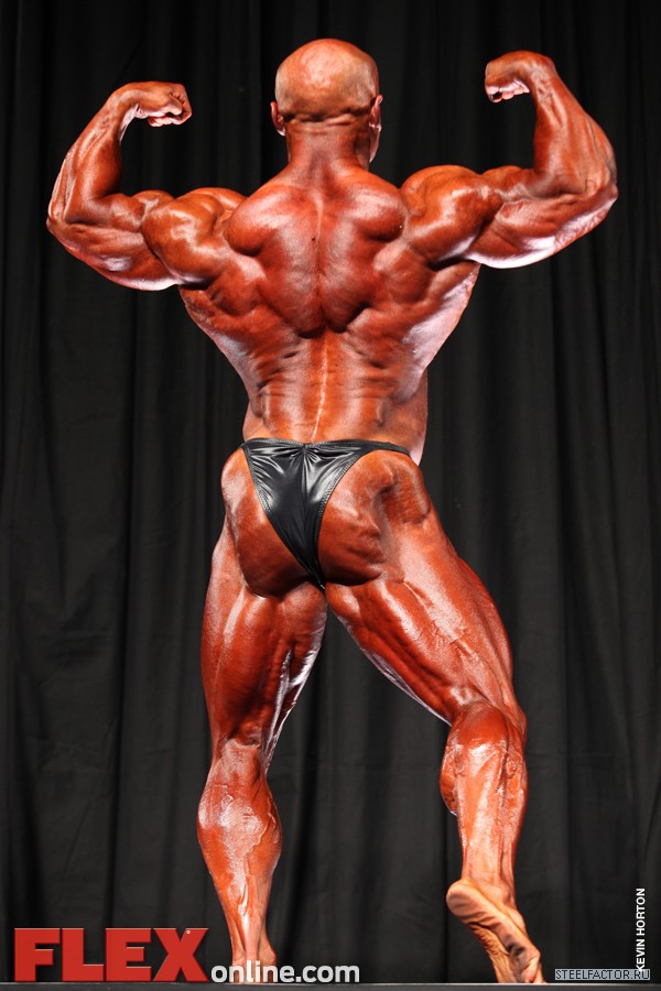 Никакого восторга. Хорошая спина! Довольно сух для него, кондиция намного лучше, чем на Аризона Про. Икры заметно слабы. Мог бы использовать чуть больше грима. Пресс выглядит натянутым и межрёберные мышцы улучшлись. Бёдрам нужно больше размера, чтобы догнать верх тела.