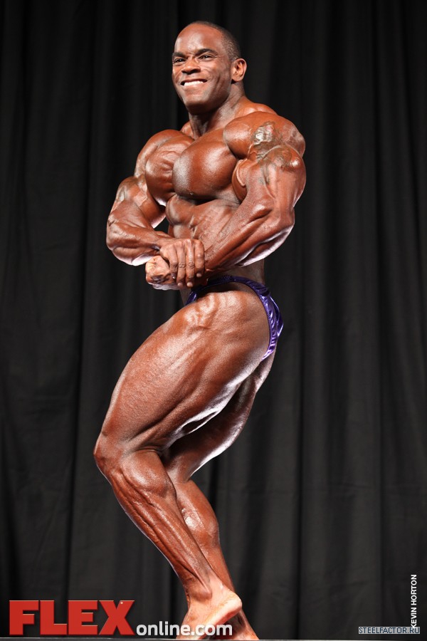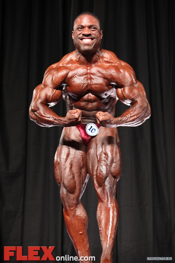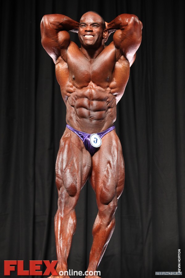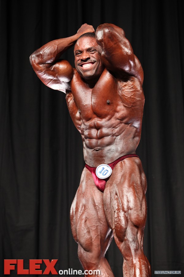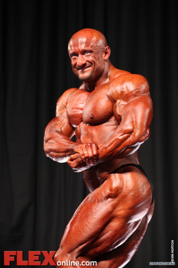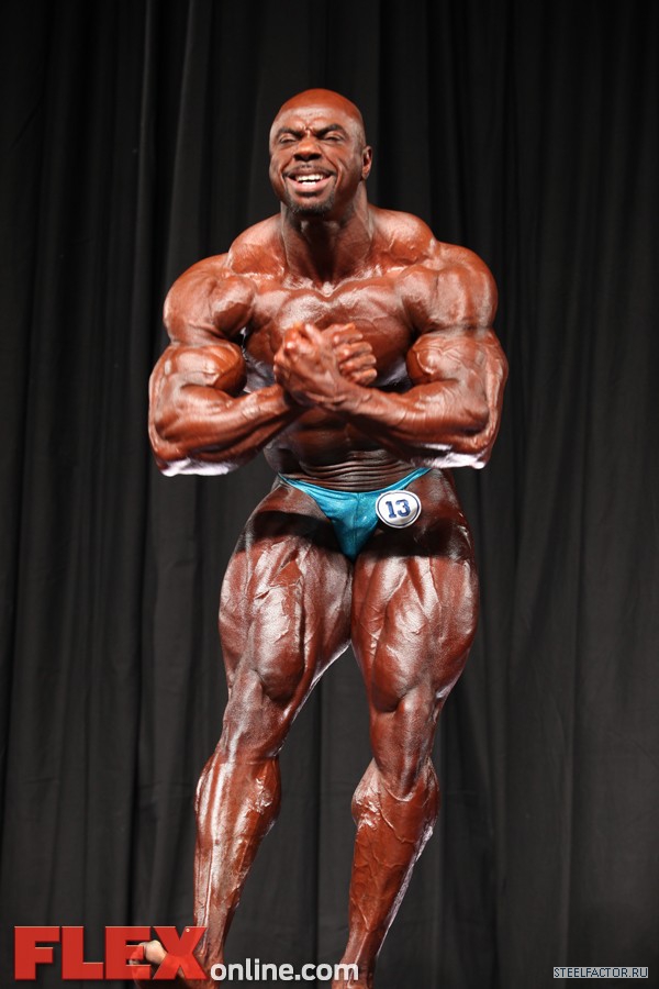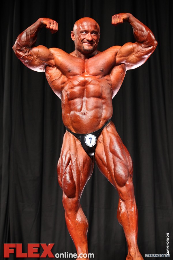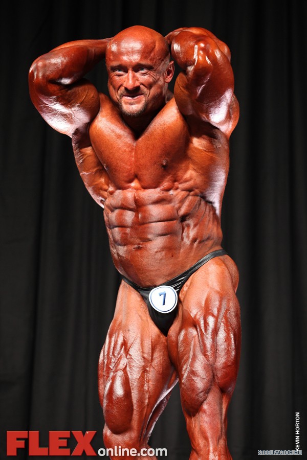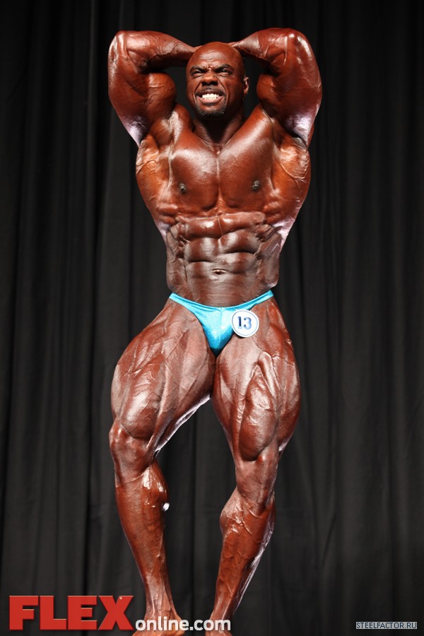 Никакого восторга. Хорошая спина! Довольно сух для него, кондиция намного лучше, чем на Аризона Про. Икры заметно слабы. Мог бы использовать чуть больше грима. Пресс выглядит натянутым и межрёберные мышцы улучшлись. Бёдрам нужно больше размера, чтобы догнать верх тела.