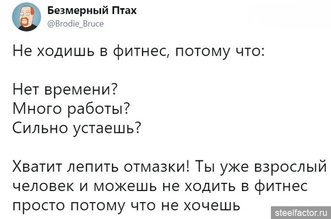 Я и говорю, что это такой тип клиентов. До первой травмы и пропал. Инструктор в зале это понимал...