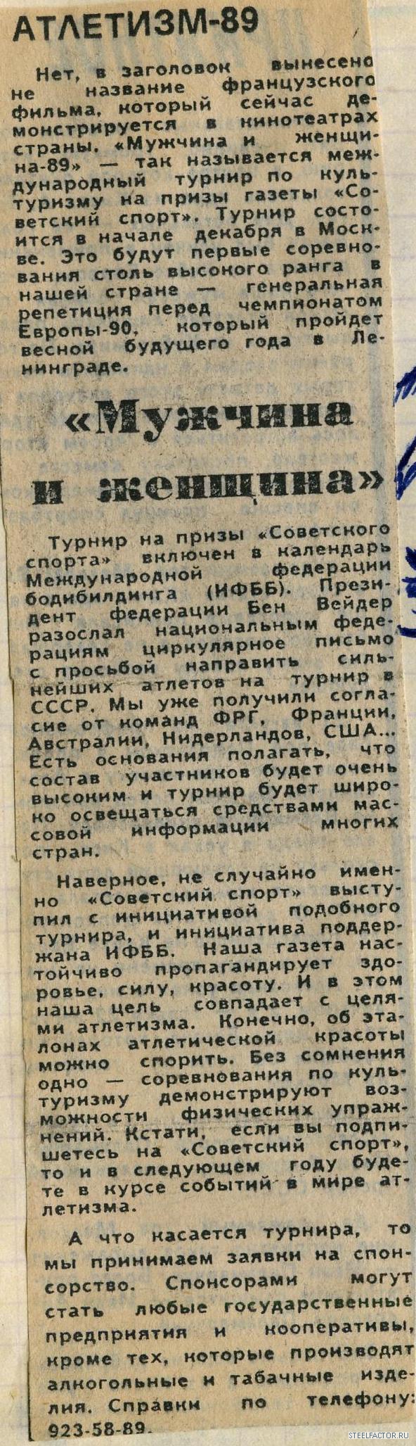 Мужчина и Женщина 1989 (из газеты Советский Спорт)