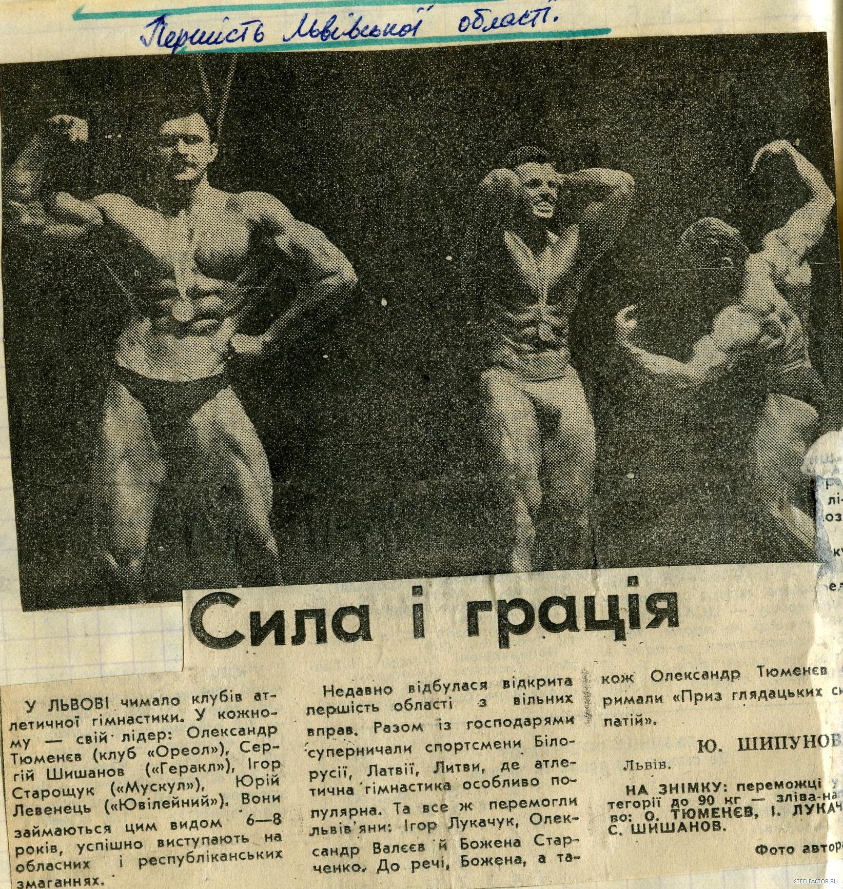 Pervyi chempionat Sov.Soyuza v Leningrade. TOP 3 v kategorii do 65 kg (sleva): Tuzov, Shumlyanskiy, Petraitis R.