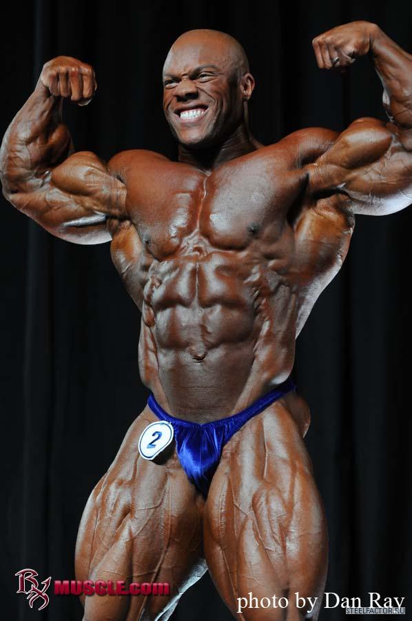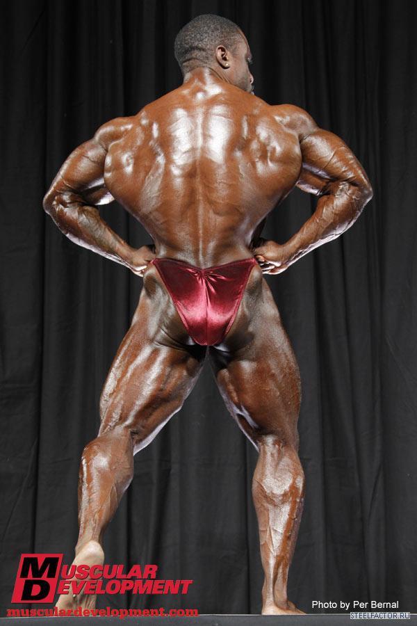 Хорошая форма и баланс. Бёдрам нужно больше " Развития" Бицепсы Бедер сбоку могли бы быть твёрже. похоже, что удерживает немного воды сзади. Спина - утолщённая и мускулистая. Бицепсы бёдер и ягодицы - уязвимые места. Грудь слегка впалая, тонкая талия. Ему придётся нелегко, чтобы побить Ронни Рокеля!