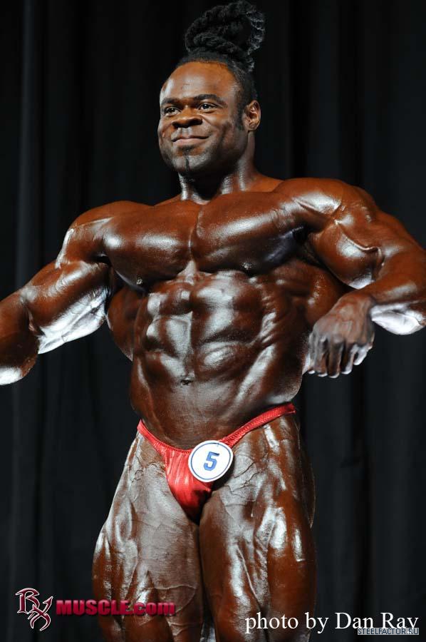 Б О Л Ь Ш О Й!!!!!! Бёдра до безумия огромны! Слегка оранжевый в гриме, венозность - сумашедшая! Поднабрался с Олимпии! Бицепсы бёдер - прорезаны и утолщённые! Небольшая плёнка воды на нижней части спины, которая может подвести его сегодня вечером. Очень впечатляет в боковых позах, выглядит очень плотным и рельефным! Самые большие ноги на шоу! События становятся всё интереснее!!!!!!!