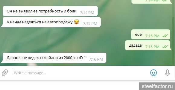 Ерема, поможешь? Покажи эту переписку одной-двум своим подружек которым хотя бы 23-25 лет есть и спроси было ли что-то не так с предпоследним вопросом и вообще с диалогом? Только не говори ебень, пиздень и т.д. пусть у них мнение обо мне будет изначально нейтральным.
