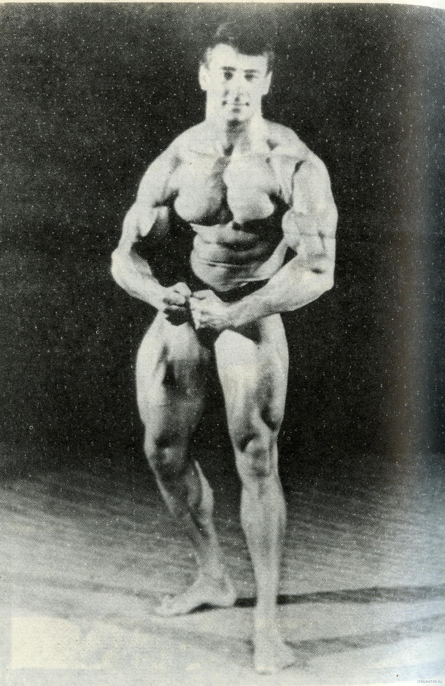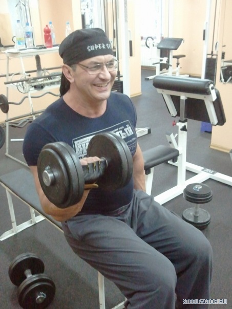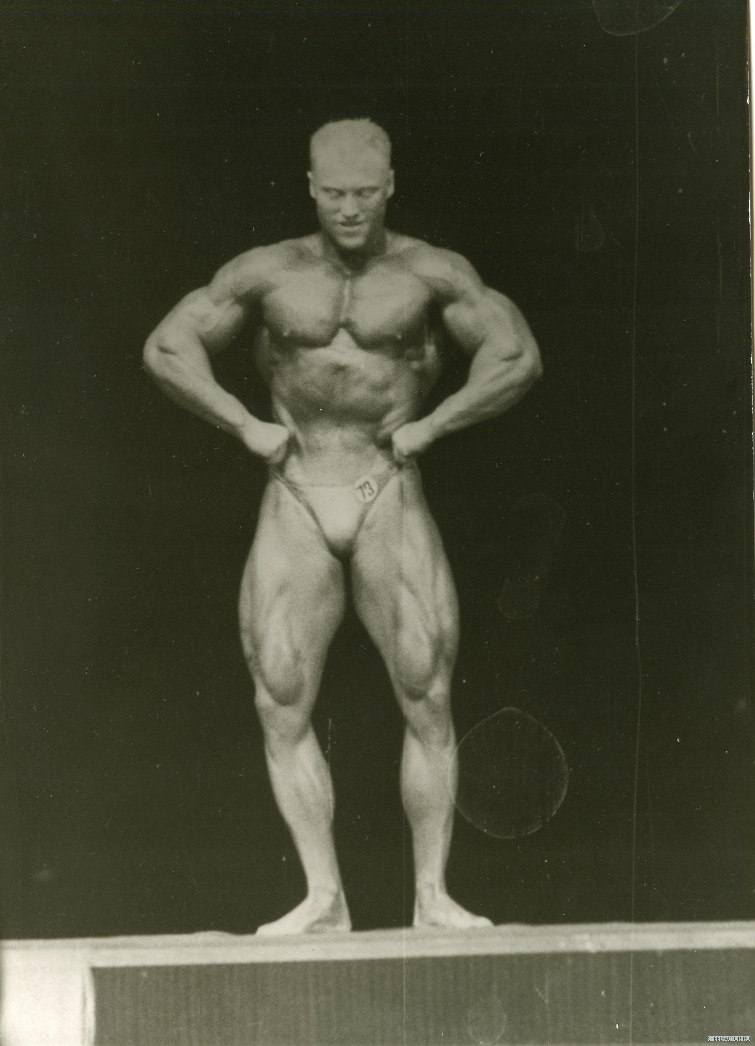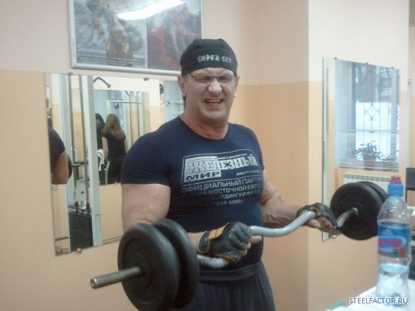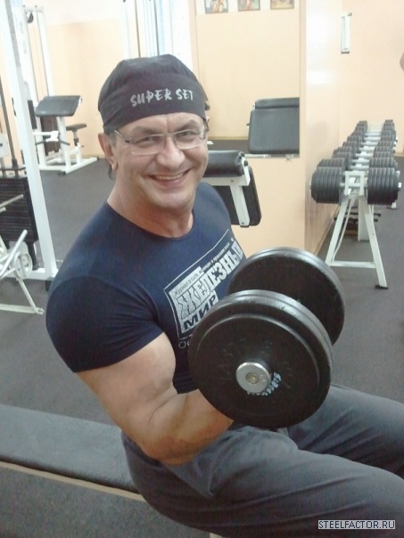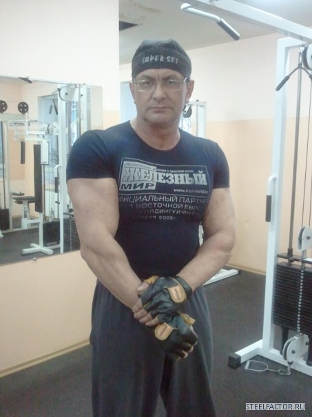 Гена невысокий, но, сцуко, квадратный был. Руки по 55 см., как то к нему в зале, при мне, подходит лифтер Андрей Коваль, маленький (рука у его, кста, 42-43 сымы на тот момент была), и в силу этого достаточно противный мужчына, но и с чуством йумора тоже. Так вот, подходит, значится, к Гене, тыкает пальцем тому в раскачанный до этого на скамье скотта и огроменно-ужасающий бицепс. И изрекает: "У меня тоже такие будут" ...пауза. Все недоуменно пялятся на парочку. "...ноги", ставит точку Андро и скрывается в потемках зала. Занавес.