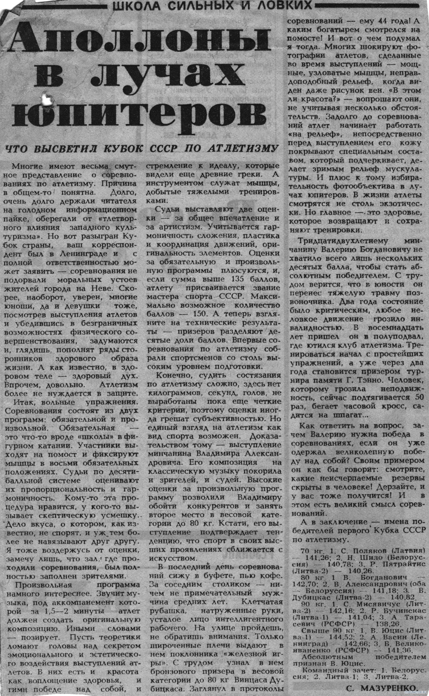 Отчет о Чемпионате Европы 1990г. в Ленинграде ( укр журнал СТАРТ )