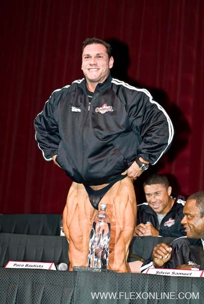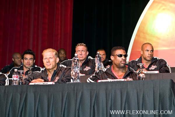 Вкратце: сходятся во мнении, что в первой тройке будут Джей, Ронни и Мартинез. Кто из них - никто не берется ставить. Кто с четвертого места и дальше - большой вопрос и интрига. Флексу между делом замеряют бицепс - оказалось 20,5 -21 дюйм - "после 4 месяцев занятий и без всякой химии", как он клянется.