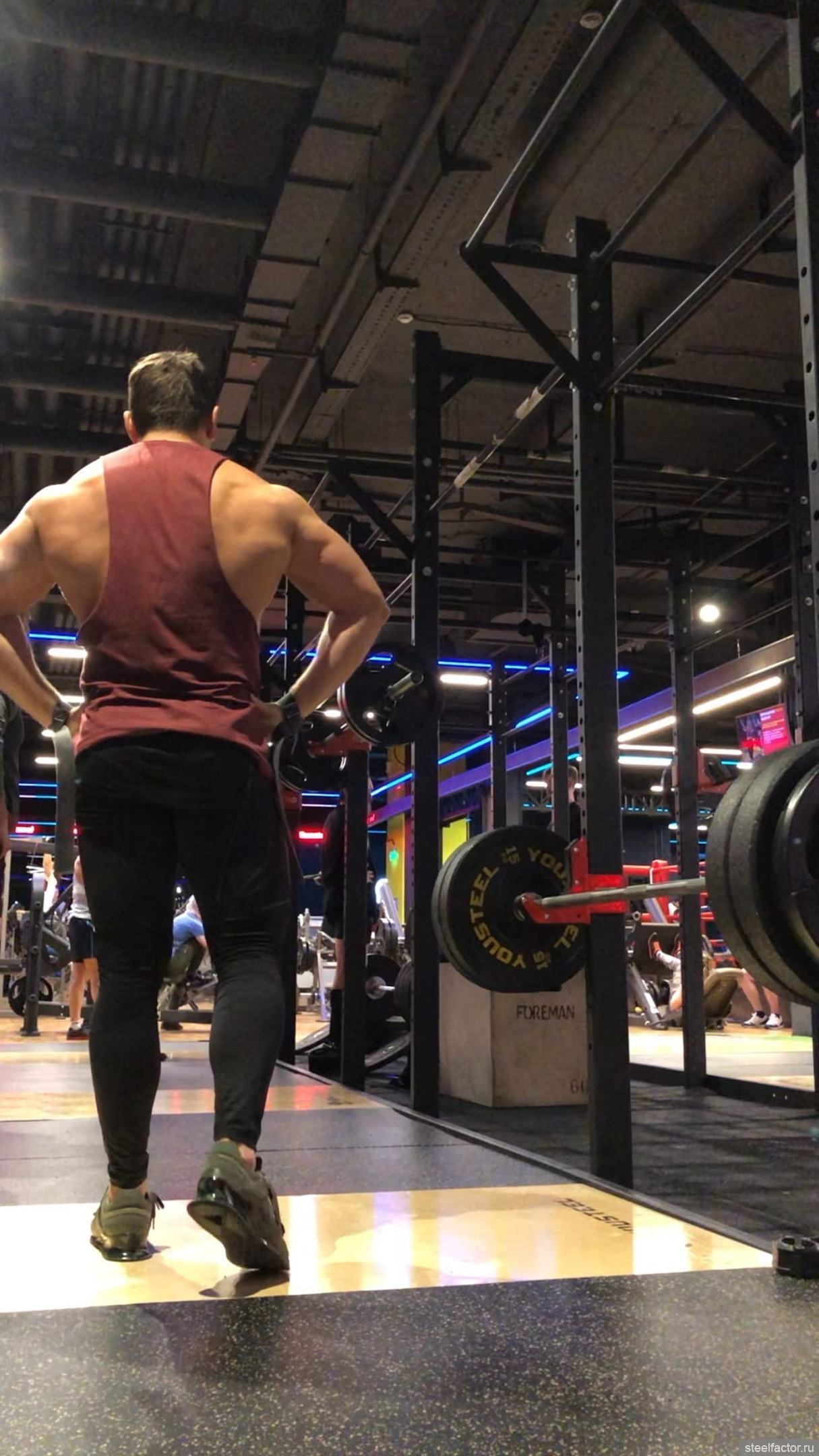 Сделал ноги, по плану должен был быть присед с выходом на прибавку к рабочему весу: 160 кг 5х3. Тем не менее, я решил замахнуться на совершенно на для себя новый вес в 172,5 кг. Я никогда в жизни столько не вешал на штангу в приседе и решил попробовать.