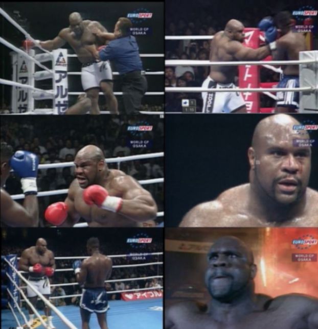Бой Боба Саппа-29лет вес 160кги США и Реми Боньяски 27 лет 100кг Голландия закончился досрочно дисквалификацией , если я не ошибаюсь,( бой шел без перевода) Боба Саппа и победой(условной) Реми.VLADIMIR S