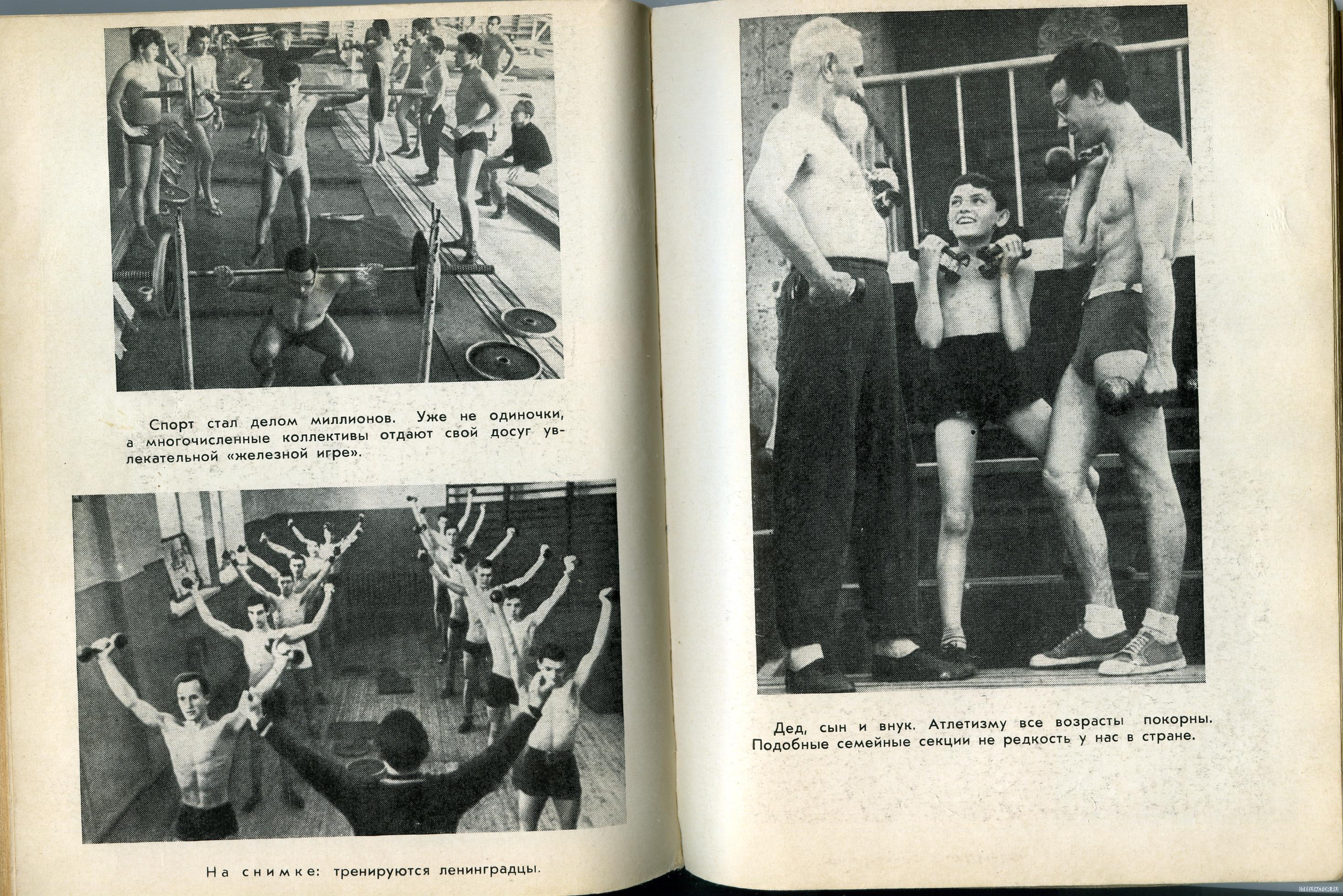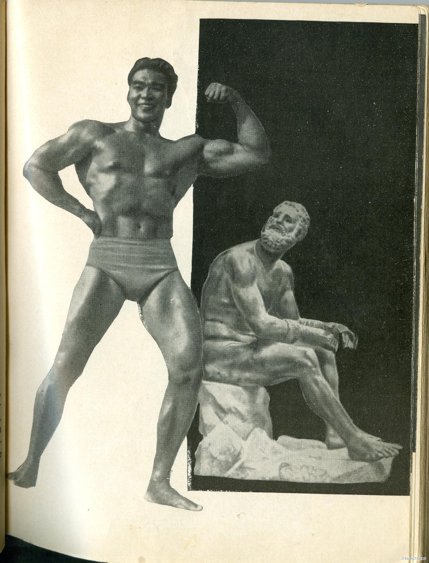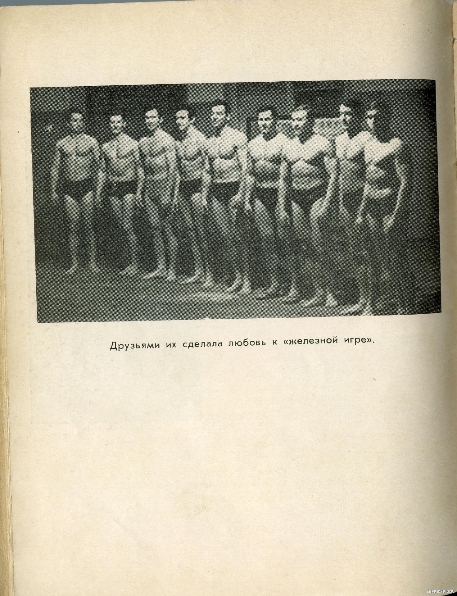 Геннадий Балдин( на фото ему 28 лет, работал в то время техником осветителем на телевидении). Балдин на десятилетие стал моделью журнала "Спортивная Жизнь России"-в комплексах на фотографиях, почти всегда он. На данном фото у него бицепс -39 см, грудь-110 см,талии-79 см. Жмет лежа штангу-110 кг, подтягивается -19раз, приседает-145кг. Вот уж кто, знает об атлетической гимнастике тех лет-все,(с ним бы пообщаться)-но, молчат ветераны!