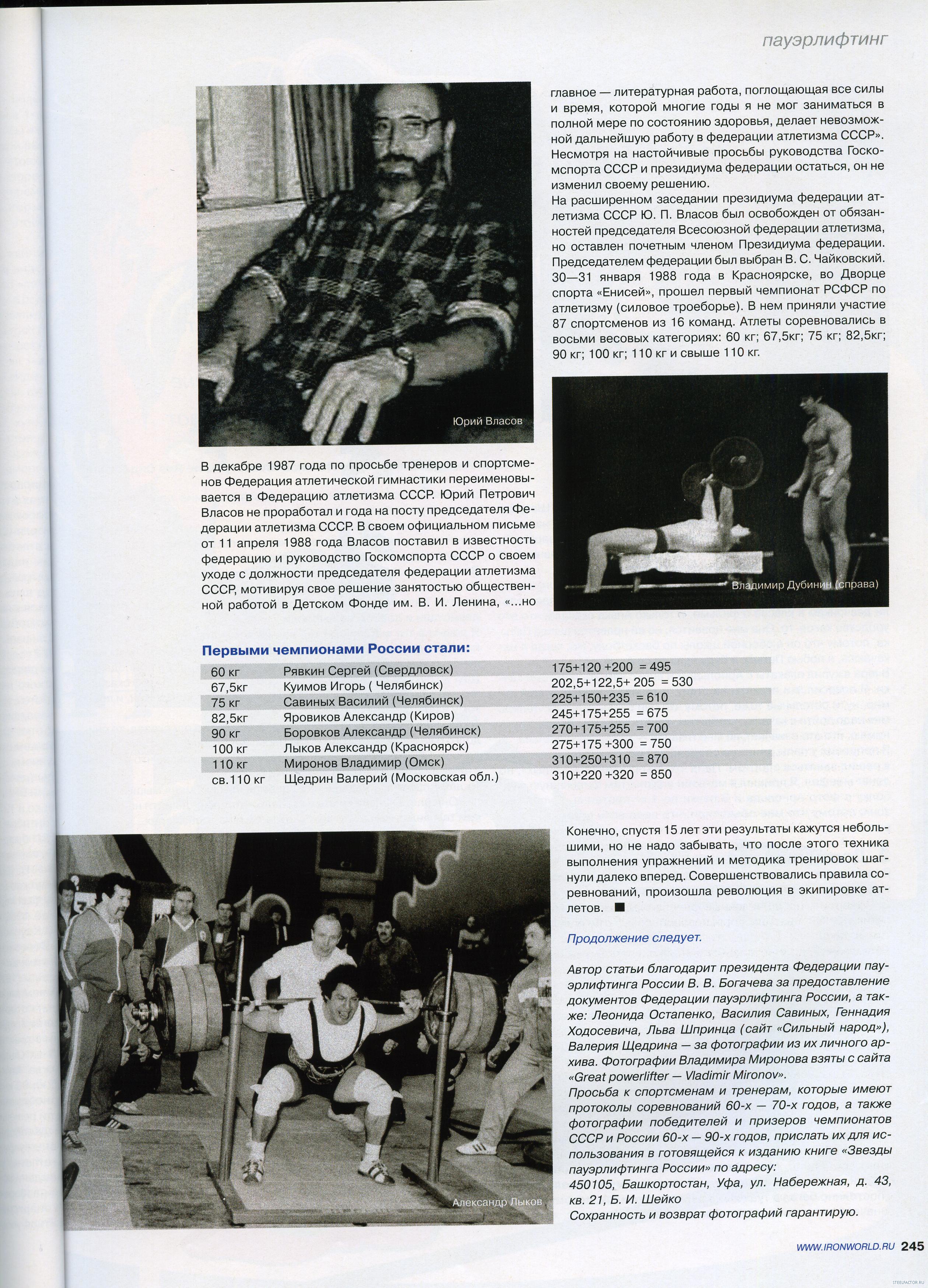 Причины ухода Ю.Власова с поста Председателя федерации атлетизма, совсем иные, чем у Б.Шейко(в книге).