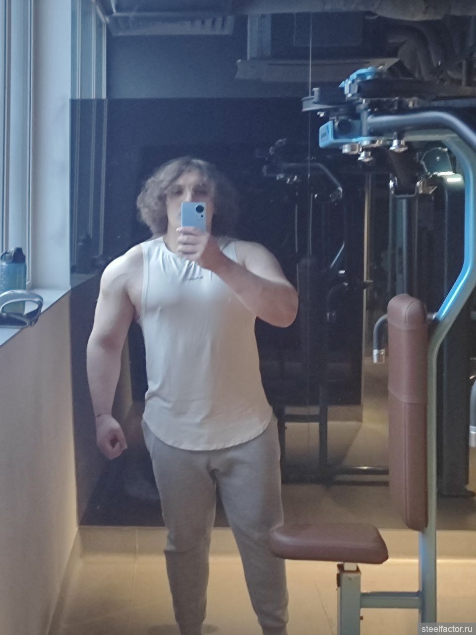 Поставил рекорд: подъём на бицепс слабейшей рукой с полной амплитудой без арийской чистоты -- не по дуге, а по прямой 35 кг × 1 +1 +1 +1 +1. На следующей тренировке 32,5 кг × 2 + 2 + 2 + 2. Тоже по прямой, без арийской чистоты. Одной левой.поставил рекорд: строгий концентрированый бицепс от колена без читинга с полной амплитудой